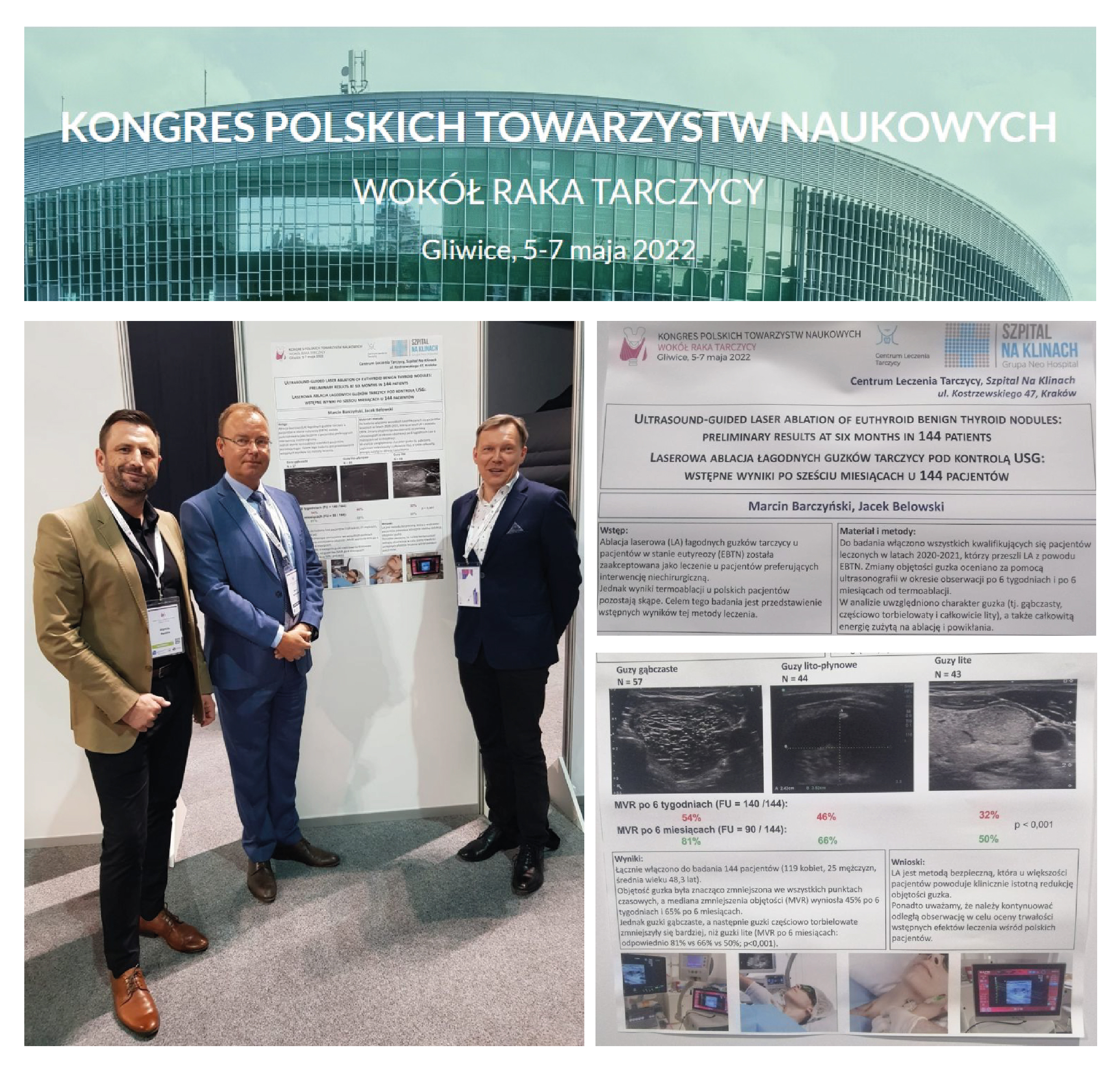Podczas zjazdu miała miejsce sesja plakatowa, na której zostały przedstawione wstępne wyniki z zabiegów laserowej ablacji łagodnych guzków tarczycy pod kontrolą USG po sześciu miesiącach u 144 pacjentów. Zabiegi te były wykonane w Szpitalu na Klinach w Krakowie przez prof. Marcina Barczyńskiego i dr Jacka Belowskiego. Wyniki te potwierdzają wysoką skuteczność usuwania guzków tarczycy z zastosowaniem technologii Echolaser.